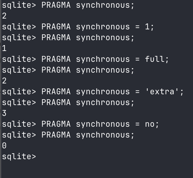 SQLite has a few pragma directives. Each one controls a behavior. You can query for the current value or set the value of your choice. And that is a bit of a problem. You can ask “but how is that a problem?”. Have a look at the screenshot below!